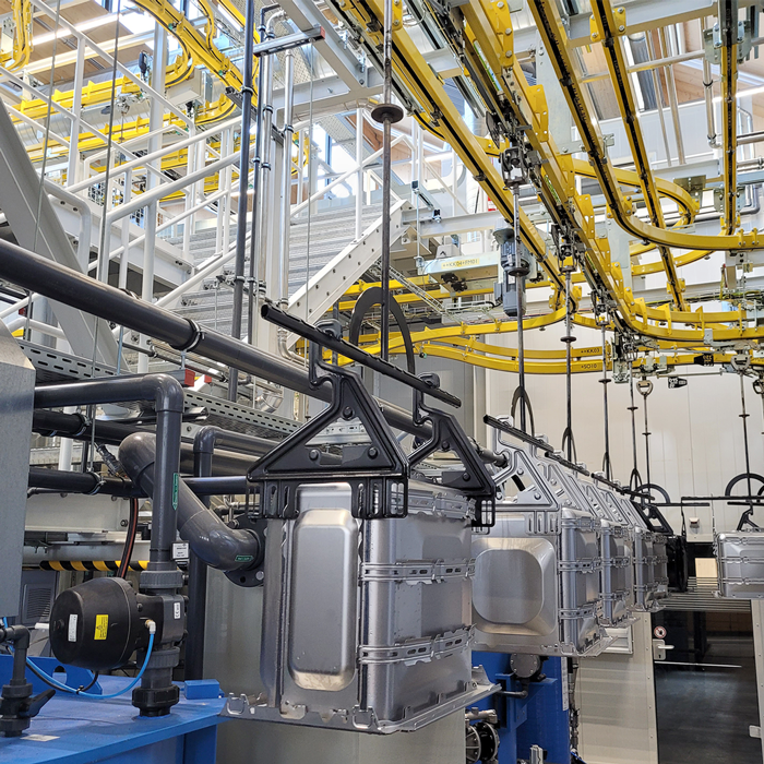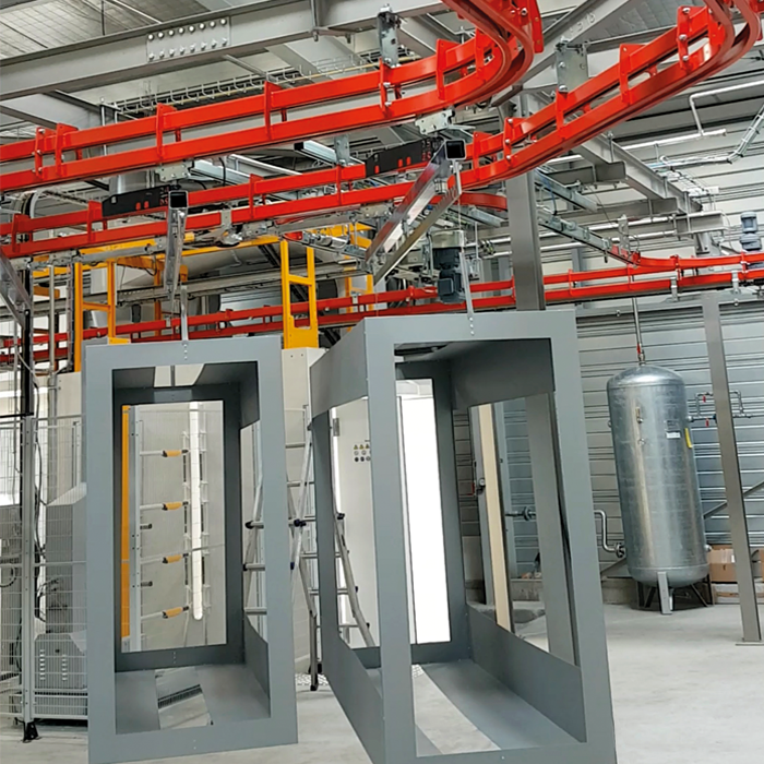 Das leichte „Power & Free“- System mit einer Tragkraft von bis zu 500 kg. Einfache und zuverlässige Akkumulierung von Laufwerken in geraden, 45°- und 90° Pufferzonen. Die automatische Laufwagenübergabe zwischen verschiedenen Kettensystemen erspart den Einsatz von Transferketten.