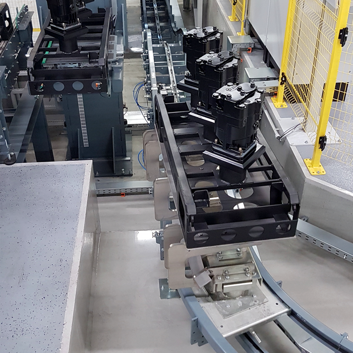This system offers exceptional precision, thanks to its four horizontal guide bearings and fully adjustable “Free” track. In addition, it requires a minimal level of control system complexity when compared to traditional skid systems or roller conveyors, thanks to the limited use of drive units and sensors.